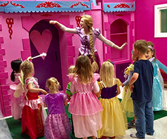 - A special visit form your favorite Princess in the Princess room. All your guests have the option to get dressed up; the princess does a meet and greet; reads a story; does sign-a-long with the kids, and pictures
